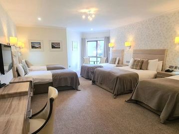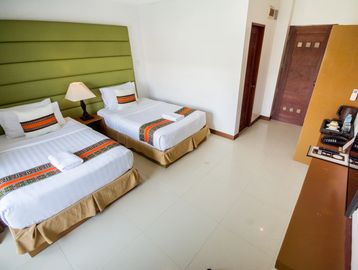 Amenities: AC, WiFi, TV, mini-fridge, private bathroom, extra beds.