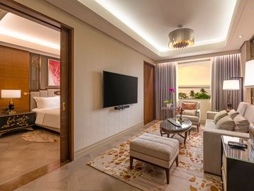 High-end, fully furnished suite with multiple rooms, exclusive facilities, and luxury features.