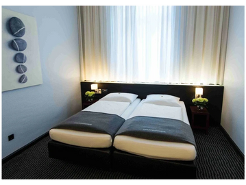 Comfortable room for two with modern furnishings and private bathroom.